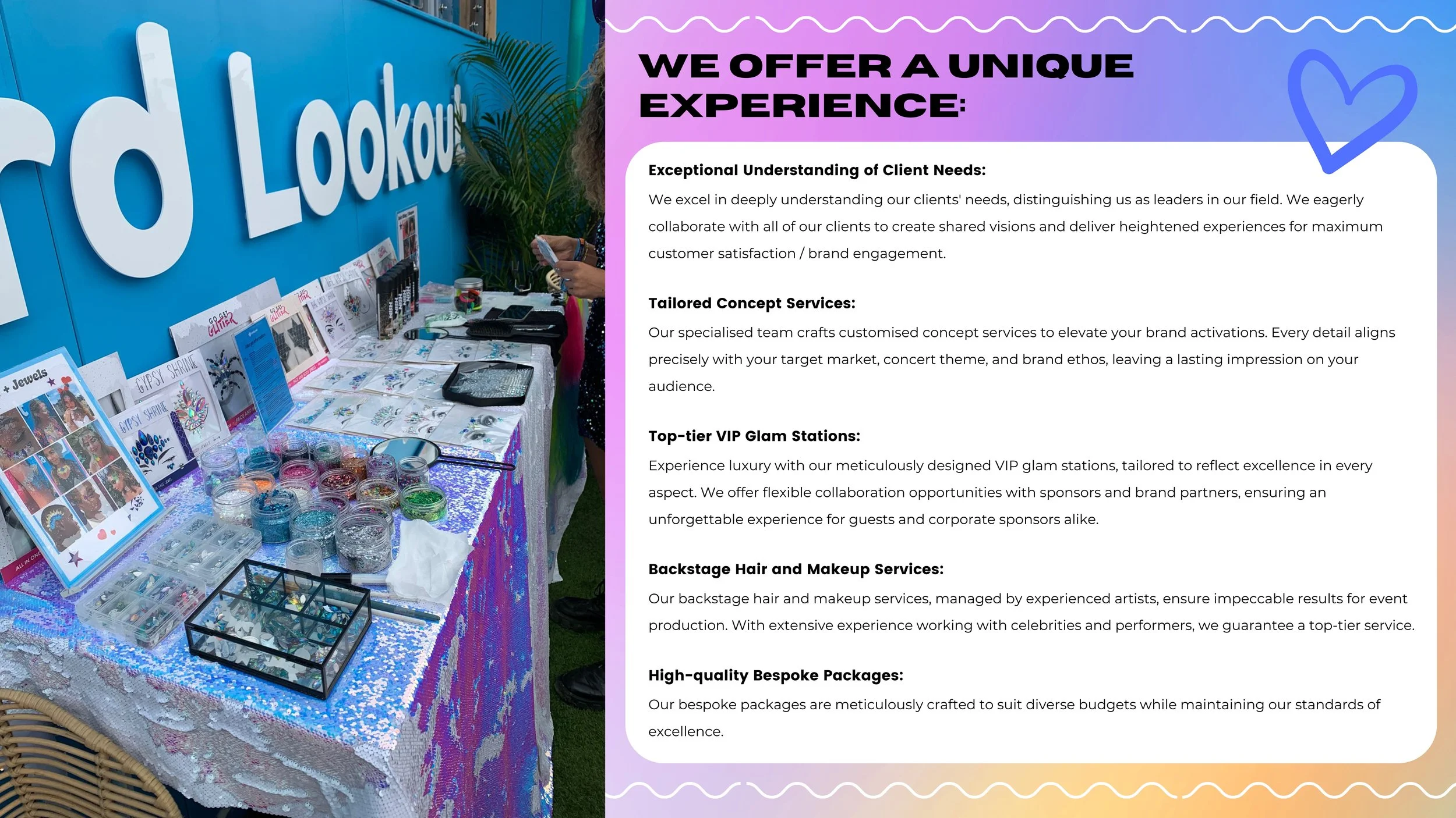 BESPOKE SET-UP / DELIVERABLES / GLITTER + JEWELS / HAIR OPTIONS
